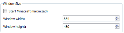 Global Minecraft settings Lets you override the Minecraft window size. The maximize option only works for legacy versions (1.5.2 and older).