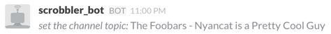 Scrobbling works by updating the topic of the channel with the artist and track name of the current song.