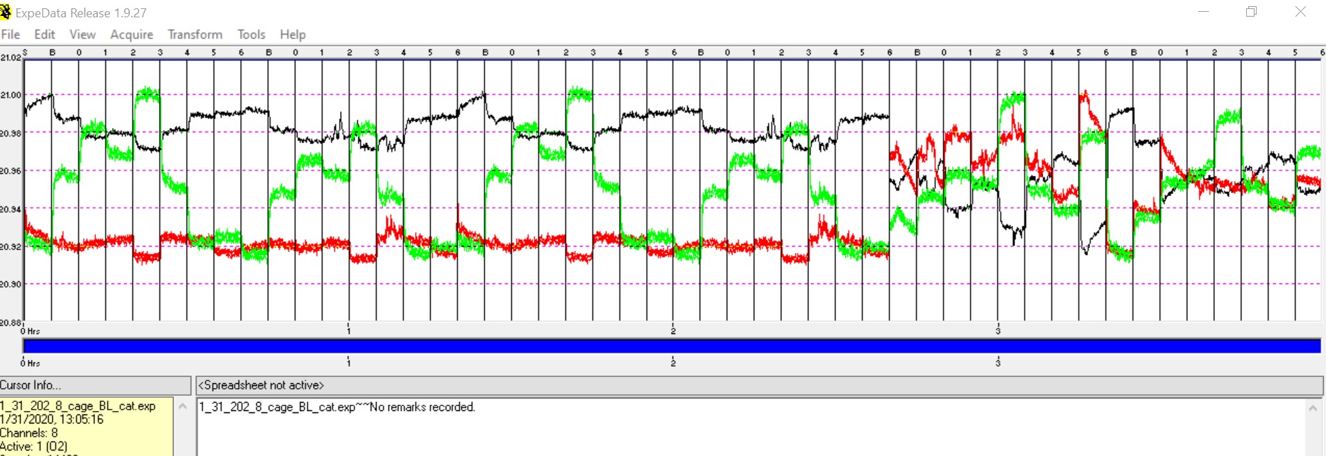 tags respirometry, macmanes Cage testing Jan31 First 80 min empty cages Second 80 min 7 mice one empty BL cages previously had water bottles in them